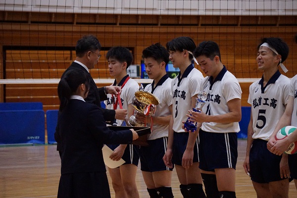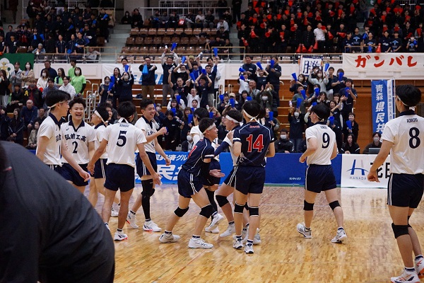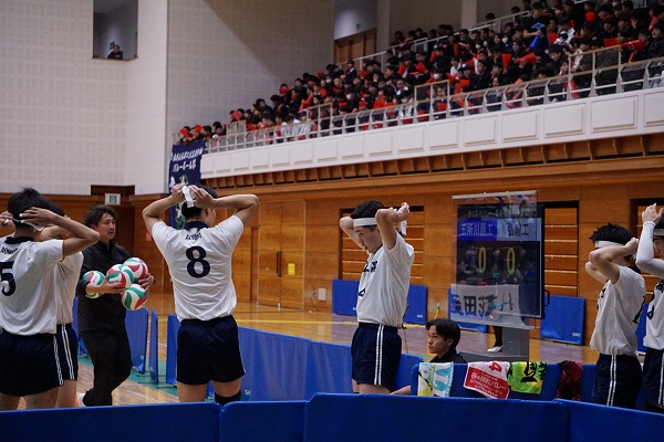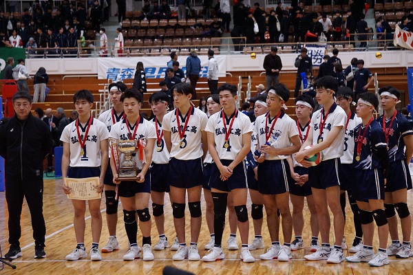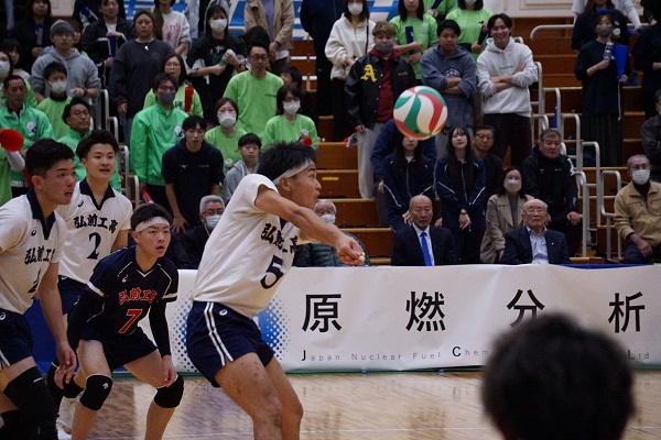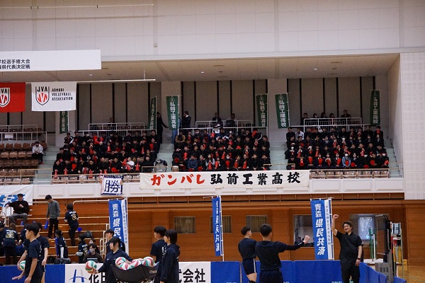 全日本バレーボール高等学校選手権大会 青森県代表決定戦 全校応援実施 10月26日(日)、青森県武道館にて「全日本バレーボール高等学校選手権大会 青森県代表決定戦」が開催され、五所川原工科高校との決勝戦を全校生徒で応援してきました。選手たちは、全校生徒の応援を背に受けて見事なプレーを見せ、優勝を決めることができました。